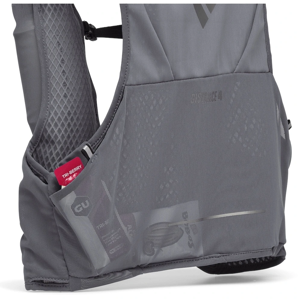 Het Gen 2 Distance 4 Hydration Vest is ontworpen voor langeafstandslopen en bergavonturen en heeft een rekbare, comfortabele stofconstructie die zich uitstrekt van de zijkanten tot het achterpaneel, speciaal ontworpen voor hardlopen.